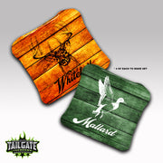 ✨ Our Stick & Slide PRO Cornhole Bags are made of high-quality material. The bag has a woven poly material with a medium slide on one side and a poly Suede Sticky side for blocking and placement shots on the other. Each set includes four bags. 6" square 1.25" thick resin filled.