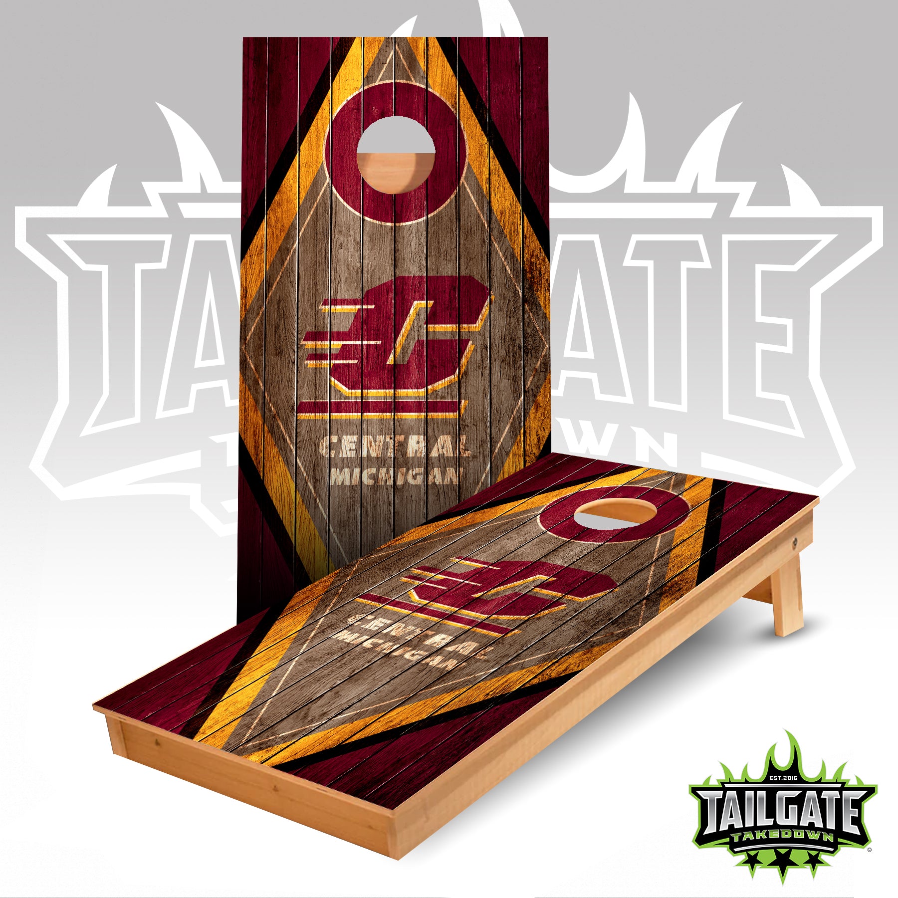 Central Michigan Wood Triangle Cornhole Boards