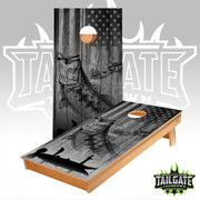 The Boards here at Tailgate Takedown are made to ACL & ACO tournament specifications. we DO NOT USE the cheaper stuff many other builders/dealers use. These are Pro Style constructed using 1/2" cabinet grade plywood. The Boards are 24"x 48" (2 feet by 4 feet) with the 6" hole centered 9" from the top and 12" from each side. Our boards are cut using a professional CNC router to ensure quality and consistency. All Boards are printed directly onto the wood for a smooth, high quality look.