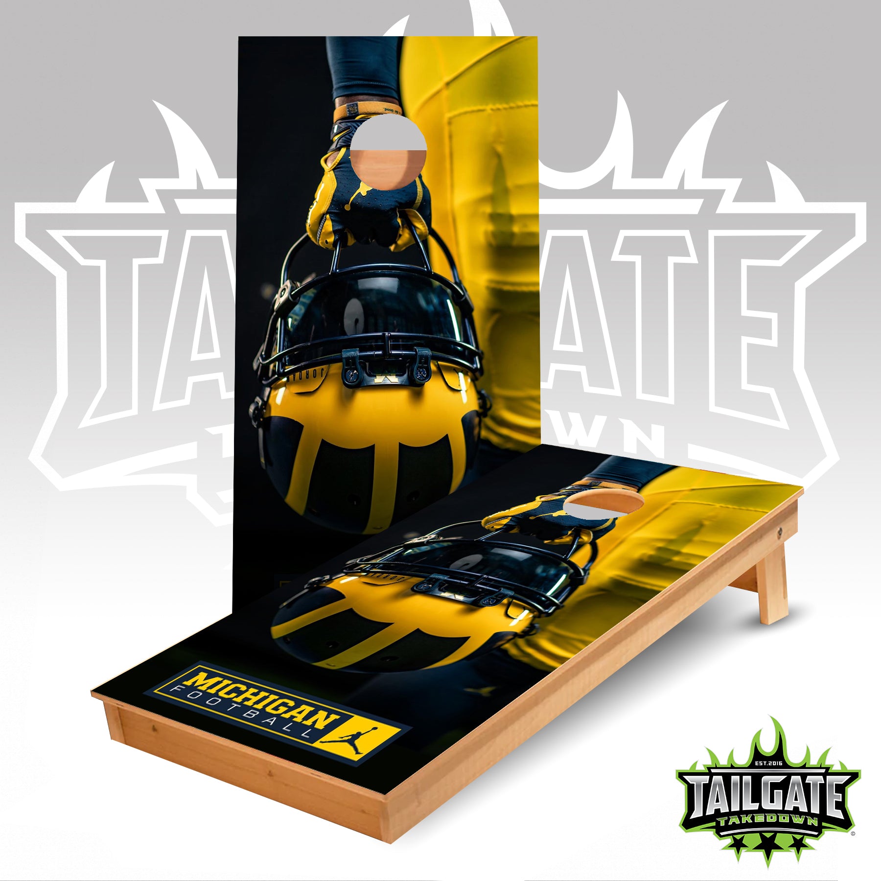 The Boards here at Tailgate Takedown are made to ACL & ACO tournament specifications. we DO NOT USE the cheaper stuff many other builders/dealers use. These are Pro Style constructed using 1/2" cabinet grade plywood. The Boards are 24"x 48" (2 feet by 4 feet) with the 6" hole centered 9" from the top and 12" from each side. Our boards are cut using a professional CNC router to ensure quality and consistency. All Boards are printed directly onto the wood for a smooth, high quality look.