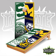 The Boards here at Tailgate Takedown are made to ACL & ACO tournament specifications. we DO NOT USE the cheaper stuff many other builders/dealers use. These are Pro Style constructed using 1/2" cabinet grade plywood. The Boards are 24"x 48" (2 feet by 4 feet) with the 6" hole centered 9" from the top and 12" from each side. Our boards are cut using a professional CNC router to ensure quality and consistency. All Boards are printed directly onto the wood for a smooth, high quality look.